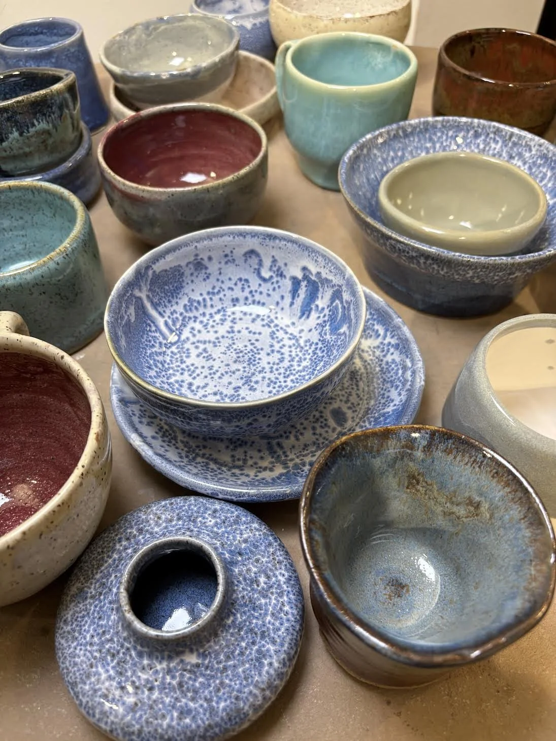 Includes- bisque firing, glaze firing, tools, 1 shelf space + 8lbs of clay